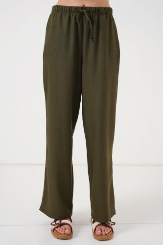 Geniş Paça Keten Pantolon 6735 Haki